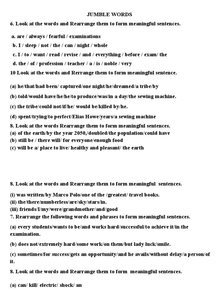 Rearrange The Jumble Words Into A Good Sentence