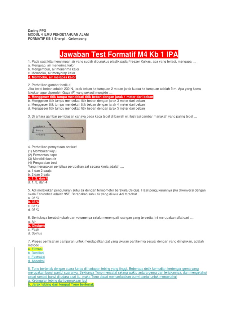 Soal dan jawaban tes formatif m4 kb1 modul 4 pedagogik 1. PPG Daljab 2020 Soal Formatif Sumatif Modul 3 Profesional Pendalaman Materi IPA. Acép Tasik 30082020.